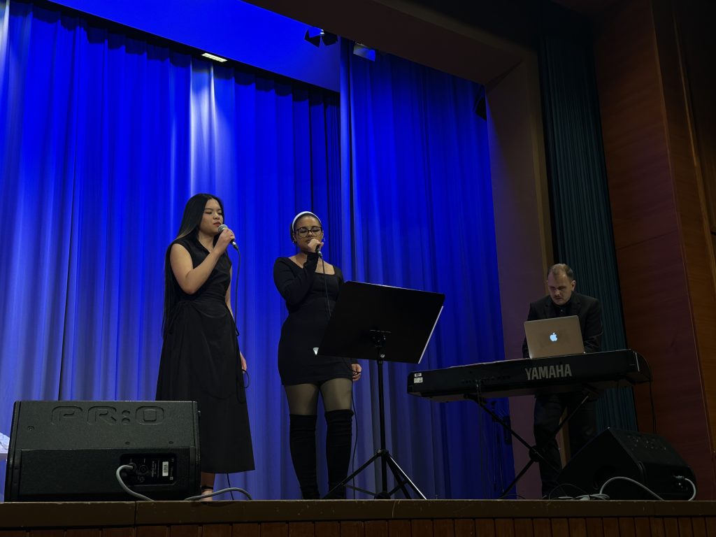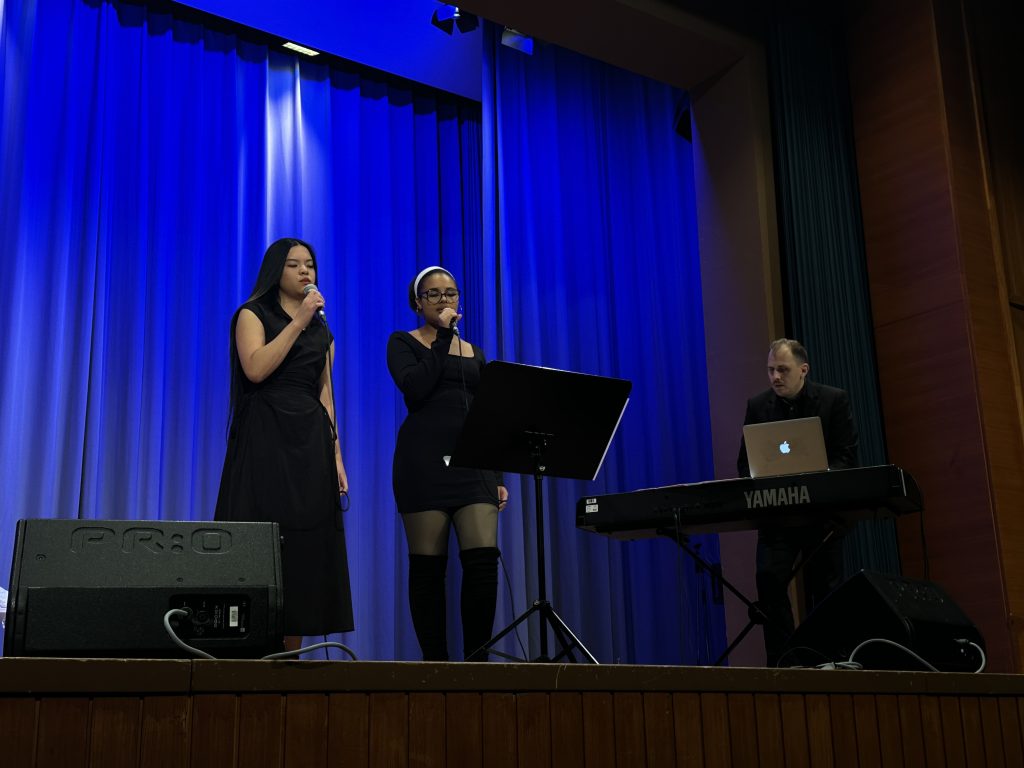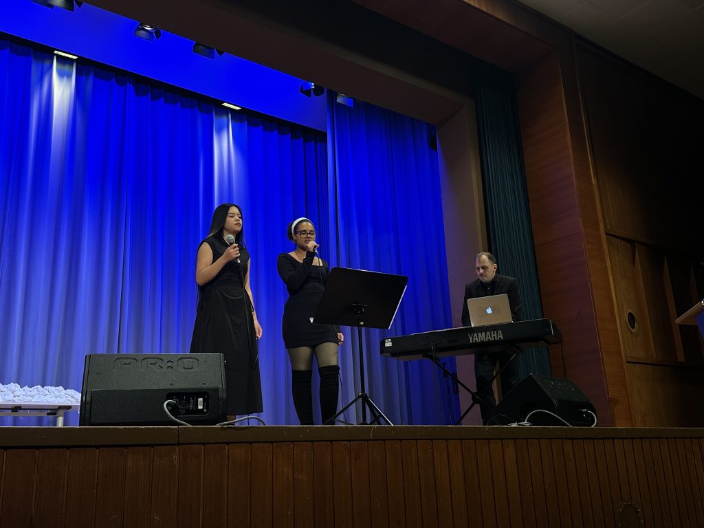 “Den musikalischen Auftakt übernahmen zwei Sängerinnen aus der Musik AG der Von-Drais-Schule unter der Leitung von Florian Hug …”