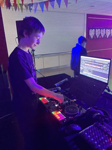 Schon vor Beginn der Feier sorgten die 10. Klassen für Stimmung: Mit einer fröhlichen Polonaise zogen sie durch das Schulhaus und holten die Schülerinnen und Schüler klassenweise ab. In der bunt geschmückten Aula wurde anschließend getanzt, gelacht und gefeiert. Für die passende Musik sorgte eine gemeinsame Playlist, die von Schülerinnen und Schülern sowie Lehrkräften zusammengestellt wurde. Ein besonderes Highlight war der Auftritt von DJ Lennox aus der 7. Klasse.