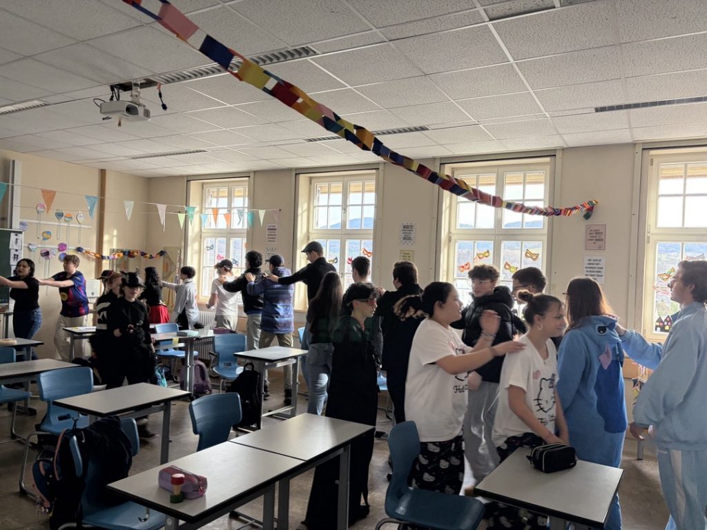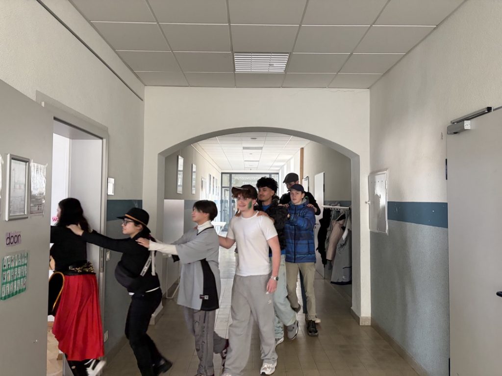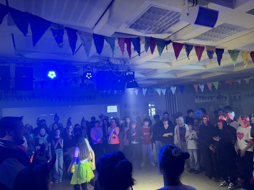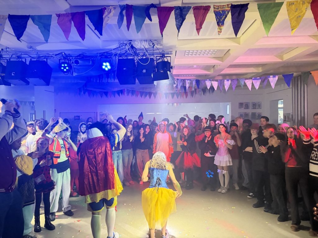 Natürlich durften auch Spiele nicht fehlen: Beim Papierkugel-Weitwurf setzte sich Herr Dosch durch und sicherte sich den Sieg. Bei der „Reise nach Jerusalem“ gewann Qasim aus der 9. Klasse unter großem Applaus. Ein weiterer Höhepunkt war der Kostümwettbewerb: Maria aus der 8. Klasse überzeugte mit ihrem kreativen Outfit ebenso wie Herr Hirth, die als Schneewittchen für viel Begeisterung sorgten.