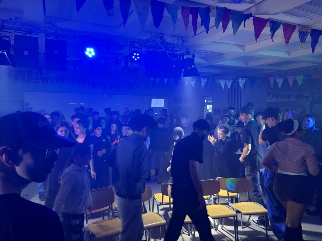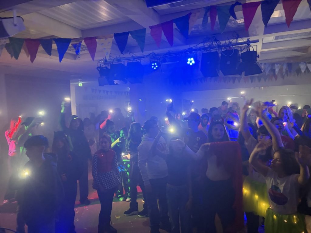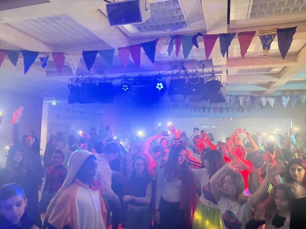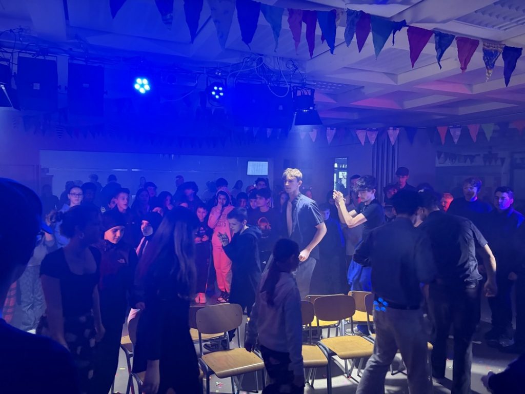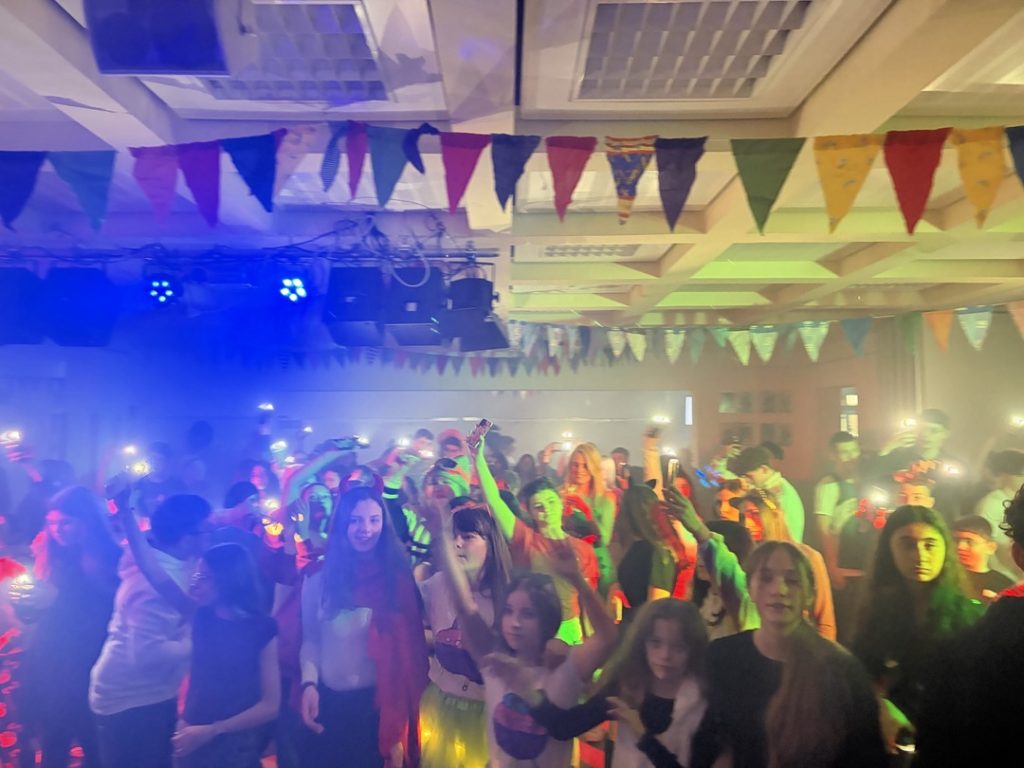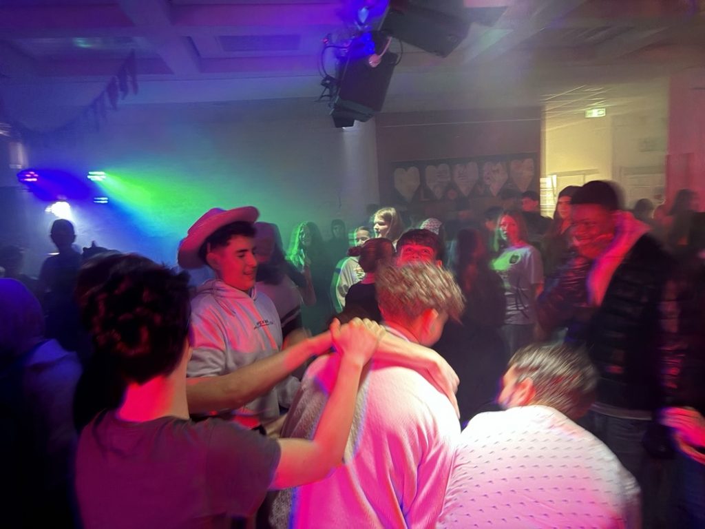 Schon vor Beginn der Feier sorgten die 10. Klassen für Stimmung: Mit einer fröhlichen Polonaise zogen sie durch das Schulhaus und holten die Schülerinnen und Schüler klassenweise ab. In der bunt geschmückten Aula wurde anschließend getanzt, gelacht und gefeiert. Für die passende Musik sorgte eine gemeinsame Playlist, die von Schülerinnen und Schülern sowie Lehrkräften zusammengestellt wurde. Ein besonderes Highlight war der Auftritt von DJ Lennox aus der 7. Klasse.