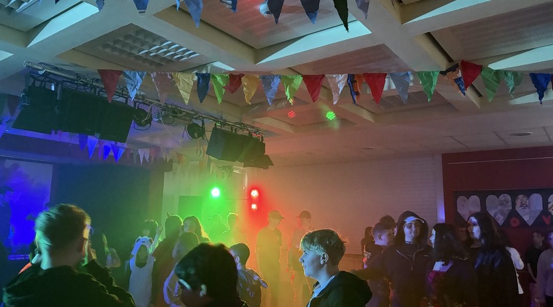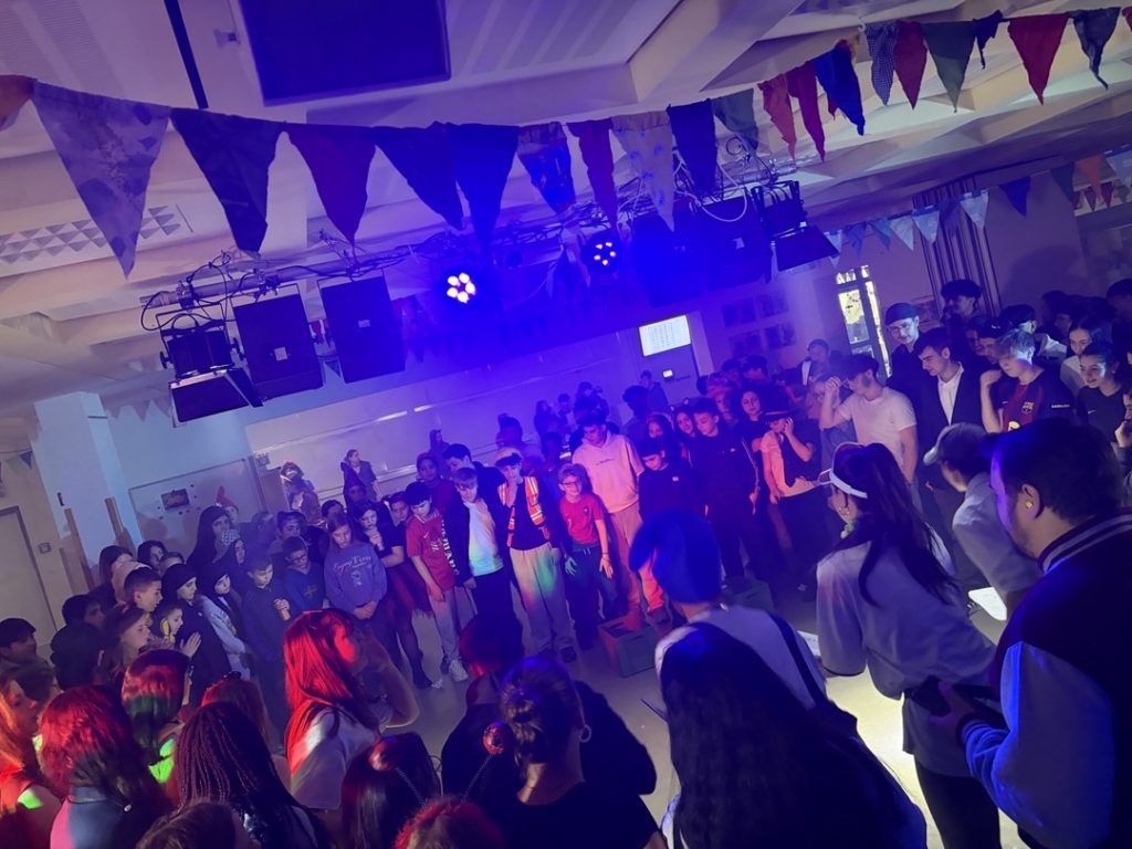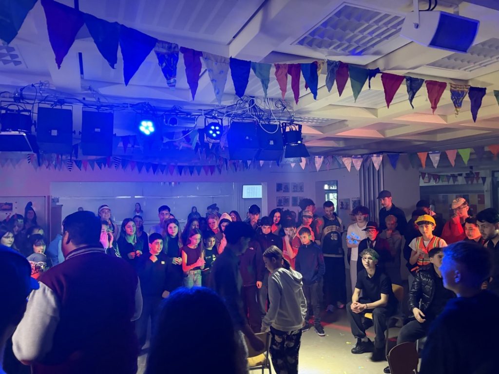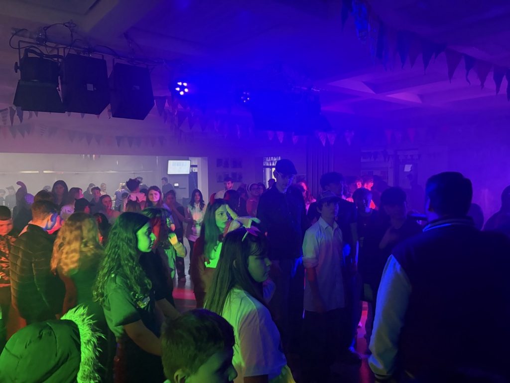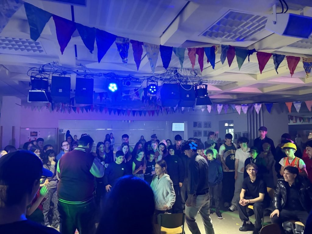 Schon vor Beginn der Feier sorgten die 10. Klassen für Stimmung: Mit einer fröhlichen Polonaise zogen sie durch das Schulhaus und holten die Schülerinnen und Schüler klassenweise ab. In der bunt geschmückten Aula wurde anschließend getanzt, gelacht und gefeiert. Für die passende Musik sorgte eine gemeinsame Playlist, die von Schülerinnen und Schülern sowie Lehrkräften zusammengestellt wurde. Ein besonderes Highlight war der Auftritt von DJ Lennox aus der 7. Klasse.